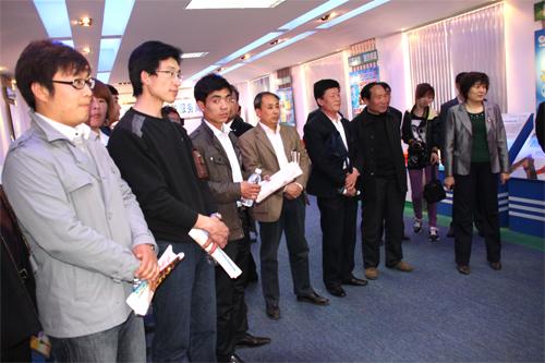 又訊:4月15日下午,參加全縣科技工作會議的40多家企業領導和代表來公司集合報到,先后參觀了我公司的技術研發中心和展廳,公司執行副總經理邴召榮陪同活動。
