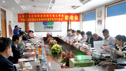 4月26日,省科技廳在公司現場主持召開了由公司承擔的省自主創新成果轉化重大專項 “節能環保低溫超導強磁除鐵器研發與產業化”項目驗收會。與會專家聽取了項目的有關報告,考察了生產現場,經質詢和討論,一致同意通過驗收。