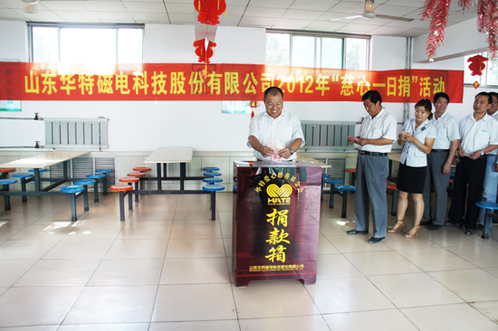 6月11日,公司組織開展了以“攜手慈善、共創(chuàng)和諧”為主題的“慈心一日捐”活動。活動開展現(xiàn)場,公司領(lǐng)導和廣大員工積極響應,紛紛伸出援助之手,踴躍捐款,展現(xiàn)了華特職工關(guān)愛社會困難群體、主動奉獻愛心的良好精神風貌,本次捐款將由城關(guān)街道辦集中上繳臨朐縣慈善總會,全部用于助困、助老、助學、助殘、助醫(yī)、賑災救助及其他慈善公益事業(yè)。