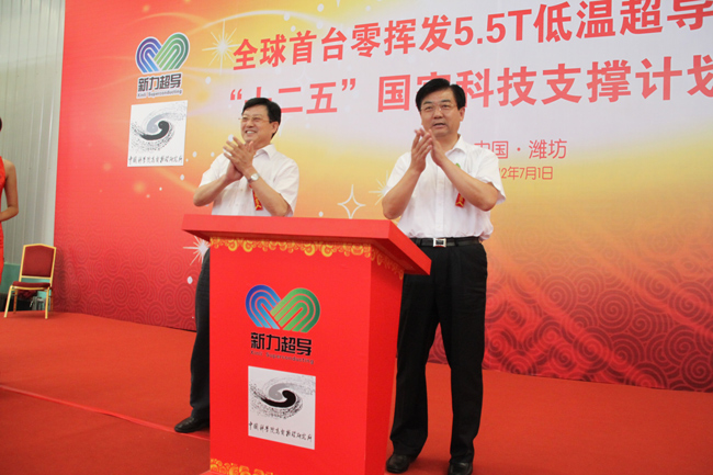 人民網濰坊7月2日電 7月1日,全球首臺零揮發5.5T低溫超導磁選機下線儀式和"十二五"國家科技計劃支撐項目“超導磁選機關鍵技術開發”啟動大會在濰坊舉行。
