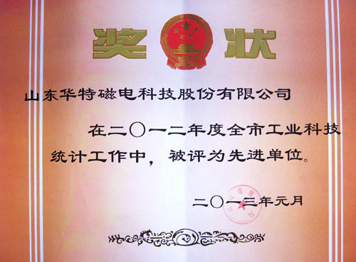 日前, 2012年度全市統計工作先進單位評選揭曉,我公司被評為全市工業科技統計工作先進單位。