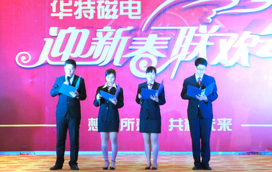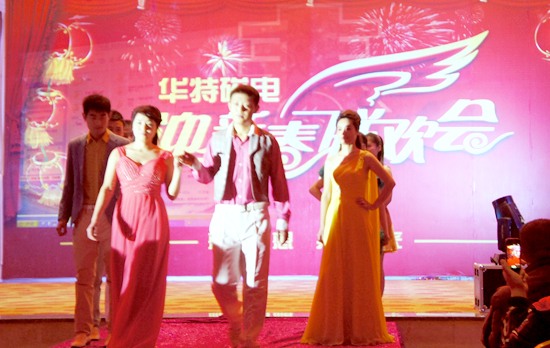 為活躍和豐富員工的業余文化生活,營造和諧氣氛,加強企業文化建設,2月7日,公司在臨朐金成大酒店舉辦了2014年新春聯歡會。聯歡會在一曲吉祥的架子鼓打擊樂表演中拉開了序幕。小品《選女婿》以搞笑、幽默、諧趣的表演,夸張、諷刺、辛辣的臺詞,打動了廣大觀眾,贏得了喝彩;贊頌華特20年風雨發展歷程的詩朗誦《華特頌》得到領導和員工的一致好評;由我們員工自發組織的模特兒走秀更是贏得了陣陣掌聲;平時身穿工作服在一線的員工穿上時尚的服裝也能煥發出明星般的風采;小品《我不是真的傻》,從一種角度來表現人們積極向上、熱愛生活的態度;此外,還有獨唱、童聲合唱等節目,豐富多彩,得到了員工一致贊揚,激發了廣大員工的工作熱情,表達了對新春生活的美好祝愿。