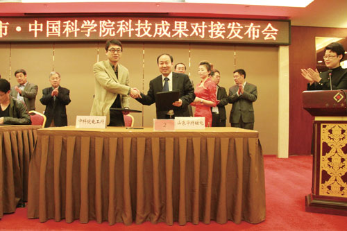 4月11日,公司董事長王兆連在濰坊東方大酒店參加了2014濰坊市-中國科學院科技成果對接發布會,會后王兆連董事長與中國科學院電工研究所宋福川高工共同簽署了“蒸發冷卻 立環高梯度磁選機產業化合作協議”。蒸發冷卻立環高梯度磁選機已于2013年12月完成產品鑒定,該項技術屬國內外首創,主要技術性能達國際領先水平。新力公司與中科院理化所副所長劉新建簽訂了傳導冷卻式低溫超導磁體的研發合作協議。該技術是由理化所低溫材料及低溫技術研究中心主任李來鳳研究員團隊的高新技術成果。前期合作主要用于實驗用超導磁分離應用的磁體,將為全國乃至全球從事礦物分離和污水處理的科研院所提供高科技和實用性更強的超導磁分離產品。