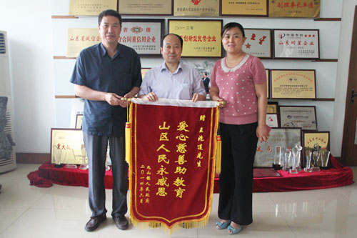 6月5日,九山鎮(zhèn)黨委委員、副鎮(zhèn)長衣燕與九山鎮(zhèn)教管辦領(lǐng)導(dǎo)來公司為公司董事長兼總裁王兆連送來錦旗,上面繡有“愛心慈善助教育,山區(qū)人民永感恩”,對王兆連董事長表示感謝。