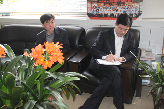 顧建華書記首先來到新工業園區,實地察看了施工現場,詢問了工作進展。隨后,深入到生產第一線,對公司創新產品進行了觀摩,并對新產品的創新點、技術優勢、市場前景等進行了解。王兆連總裁向顧書記等領導介紹了有關創新產品的性能特點和經濟下行條件下的技術優勢和能夠產生的社會效益。顧書記等領導先后對公司新開發的提精降渣磁選機、棒磨機、球磨機生產線等進行了深入了解和調研。