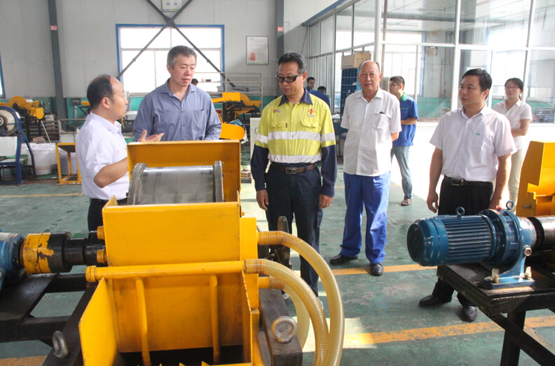 客人們先后參觀了公司展廳、技術研發中心、省重點實驗室、生產車間和專家公寓。隨后,在公司會議室召開座談會,并對提精降渣磁選機、電磁淘洗精選機等產品進行了技術交流。