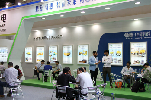 為參加本次展會,我公司精心準備了5.5T/300型低溫超導磁選機和1.5T/1000型電磁漿料磁選機兩臺工業用磁選機,不遠千里,歷時兩天從濰坊運至廣州展會現場,成為本次展會上磁選除鐵裝備的最大亮點。