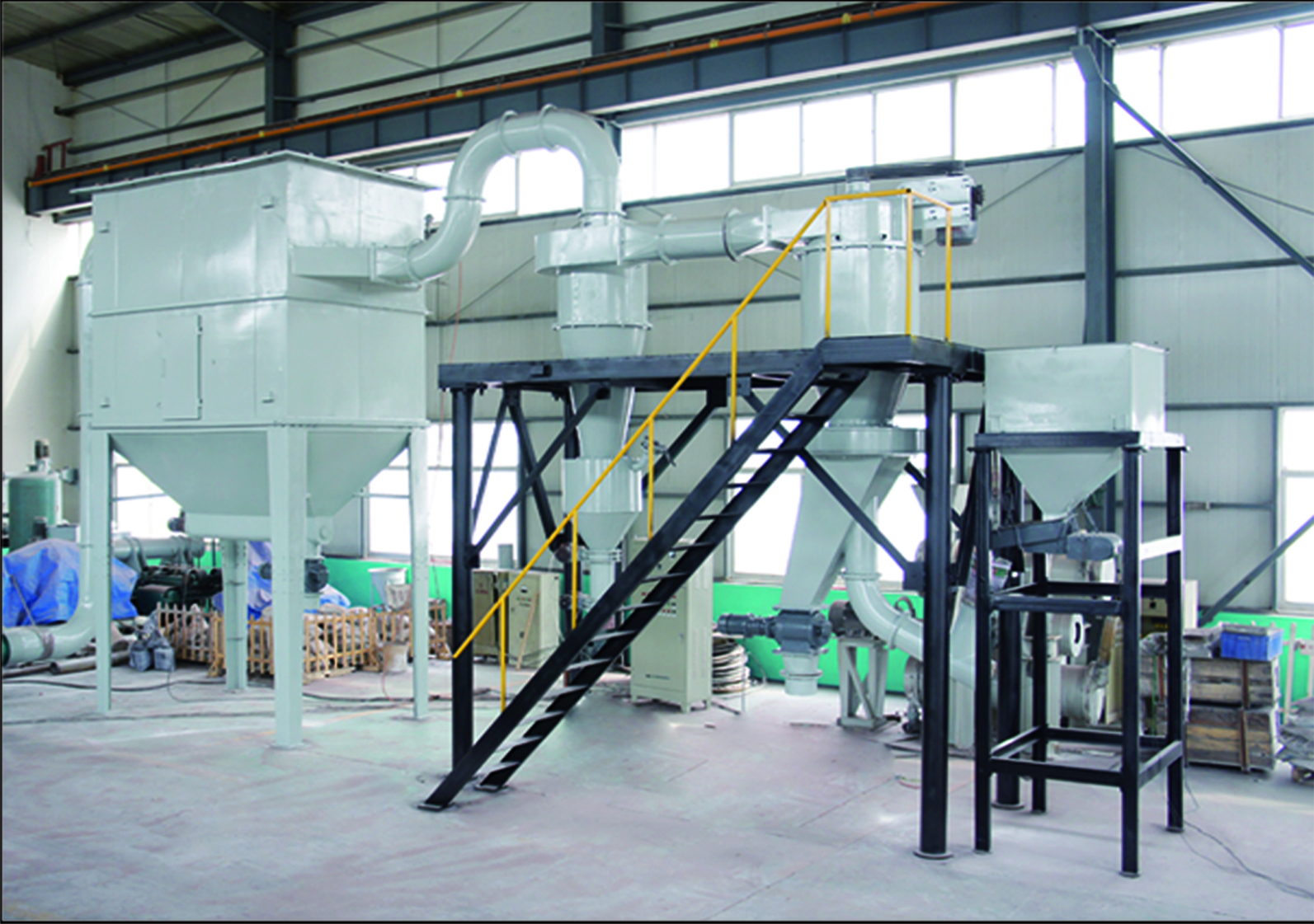 ◆ 分級產品的粒度可達D97:3~150微米,產品粒度無級可調,品種更換極其方便。