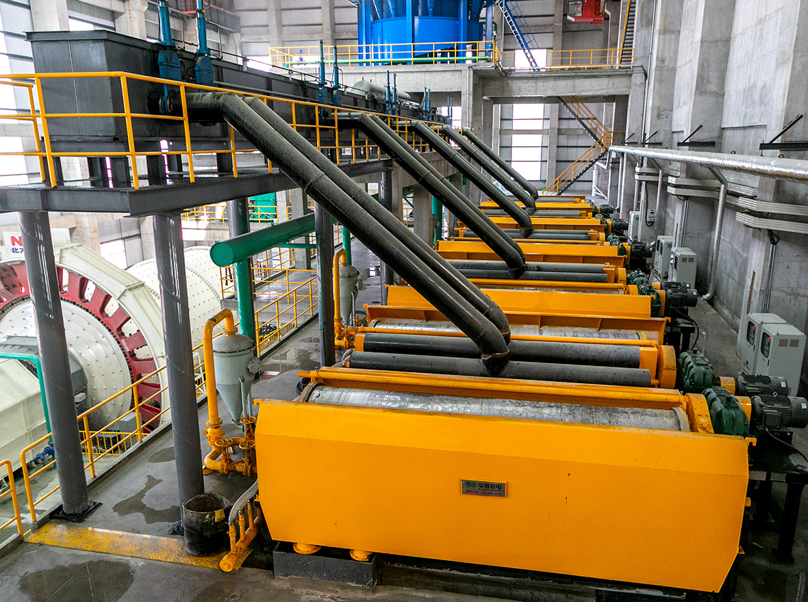 ◆采用大包角多磁極磁系結構,結合筒體內的磁攪動裝置,實現礦物多次翻滾和磁攪動,并在漂洗水的作用下,充分剔除精礦中的雜質,提高精礦品位。
